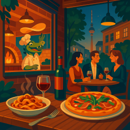 * Peter can now enjoy the dinner with his friends at Coccodrillo Berlin!
