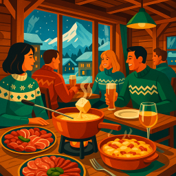 Quintessential alps restaurant with grilled meats, raclette