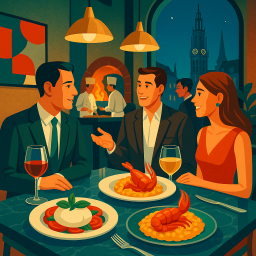 * Peter can now enjoy the dinner with his friends at Le Pristine Antwerpen!