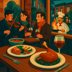* Peter can now enjoy the dinner with his friends at Le Violon Montréal!