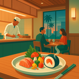 Let's say Peter has a great morning and decides to take his three friends to n/naka Los Angeles at 6 PM the same day.