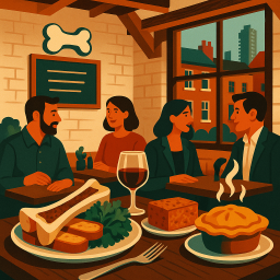 * Peter can now enjoy the dinner with his friends at St. JOHN Restaurant London!