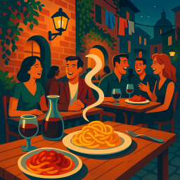 * Peter can now enjoy the dinner with his friends at Trattoria Da Enzo al 29 Roma!